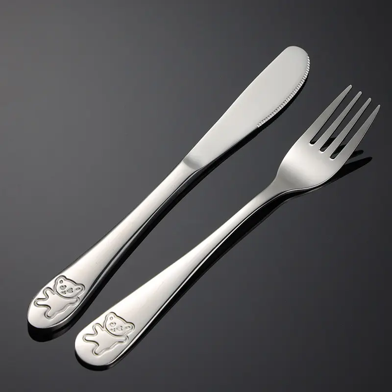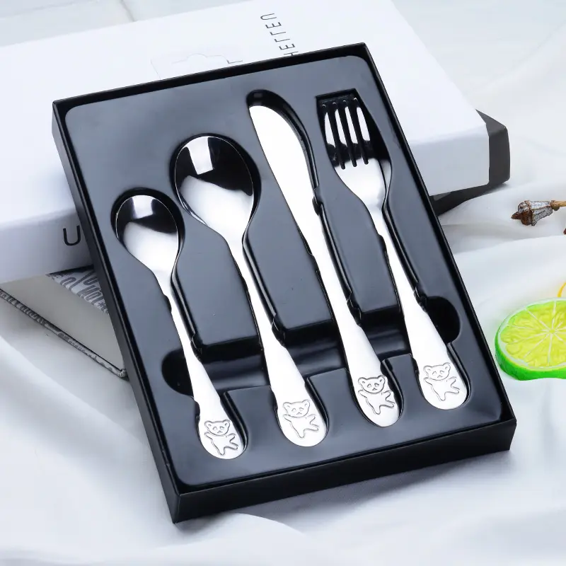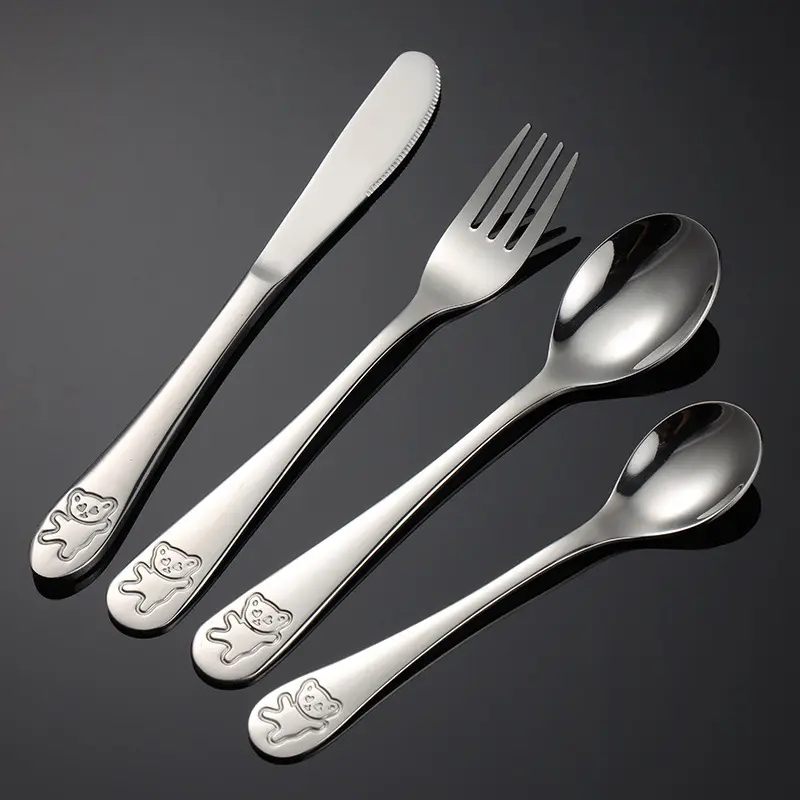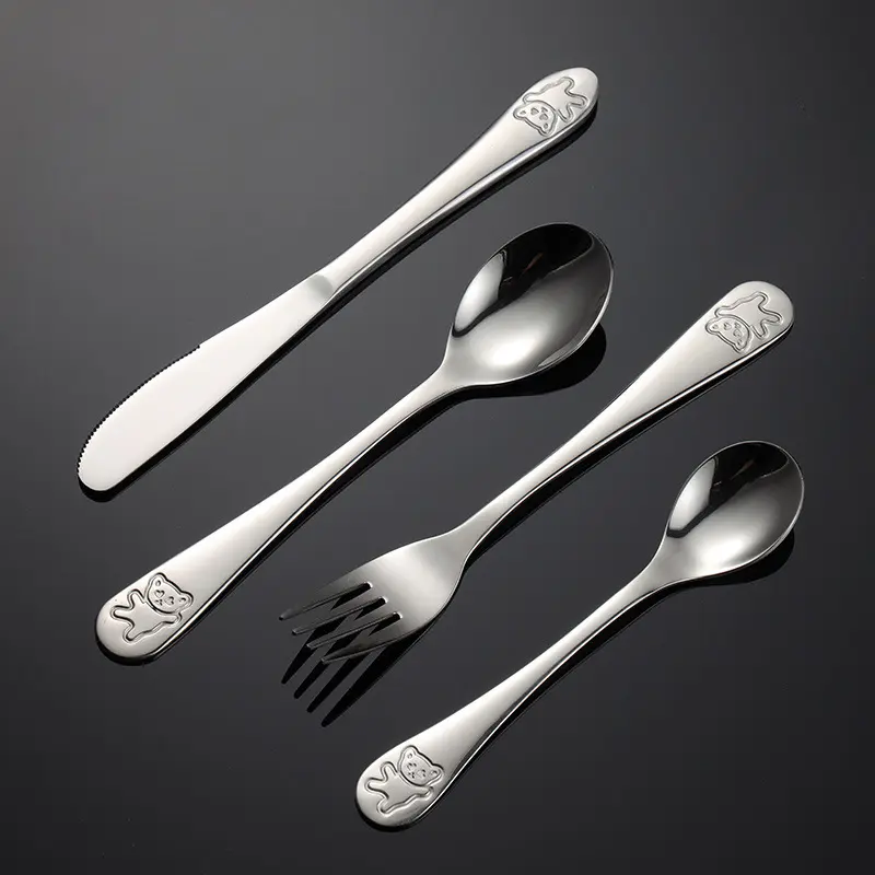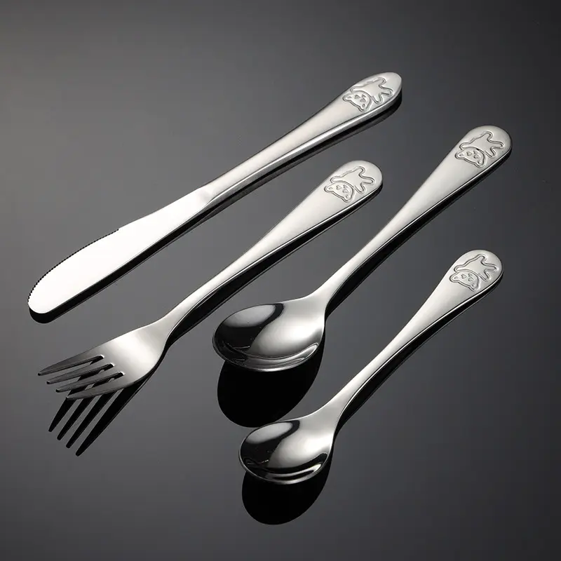 Cathylin Stock 4 PCS Striped Pattern Handle Fork Knife Spoon Cutlery Stainless Steel Flatware Set for Hotel Restaurant Event