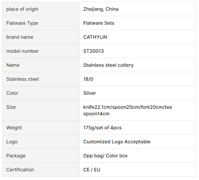 Cathylin Wholesale China Silverware Manufacturer 5 PCS Cutlery Stainless Steel Flatware Set for Hotel Restaurant