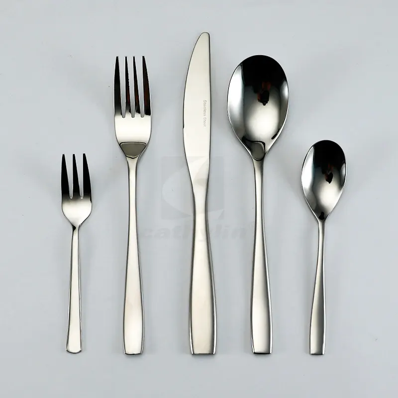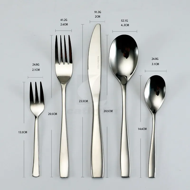 4. 5 PCS #304 Flatware Dinner Tea Spoon Dessert Fork Steak Knife #430 Stainless Steel Cutlery Set for Hotel Restaurant