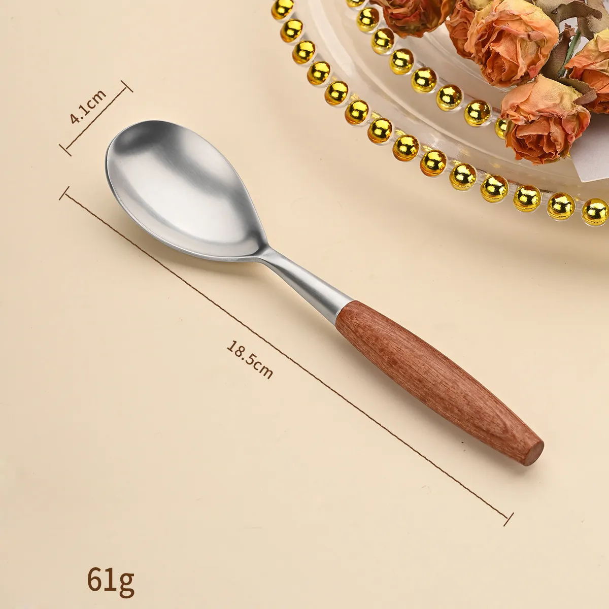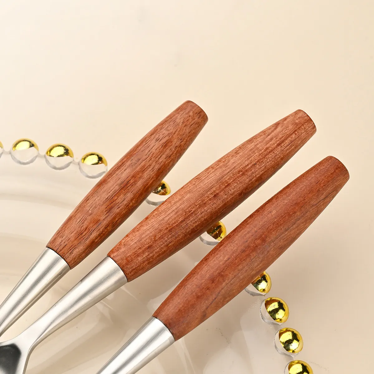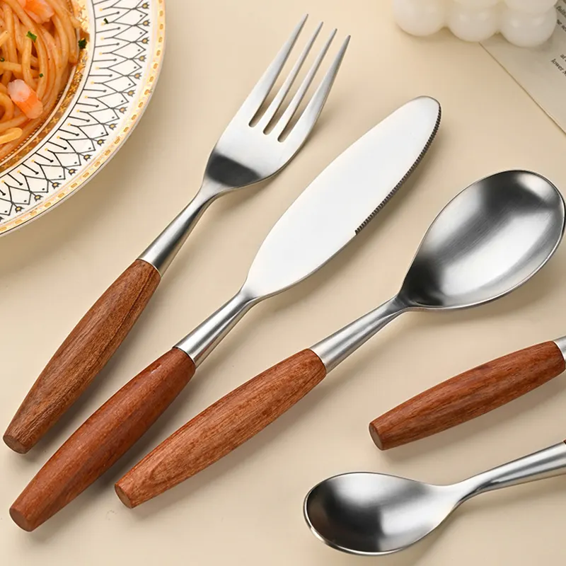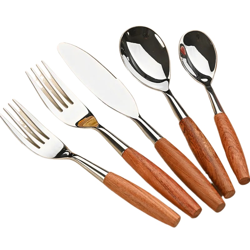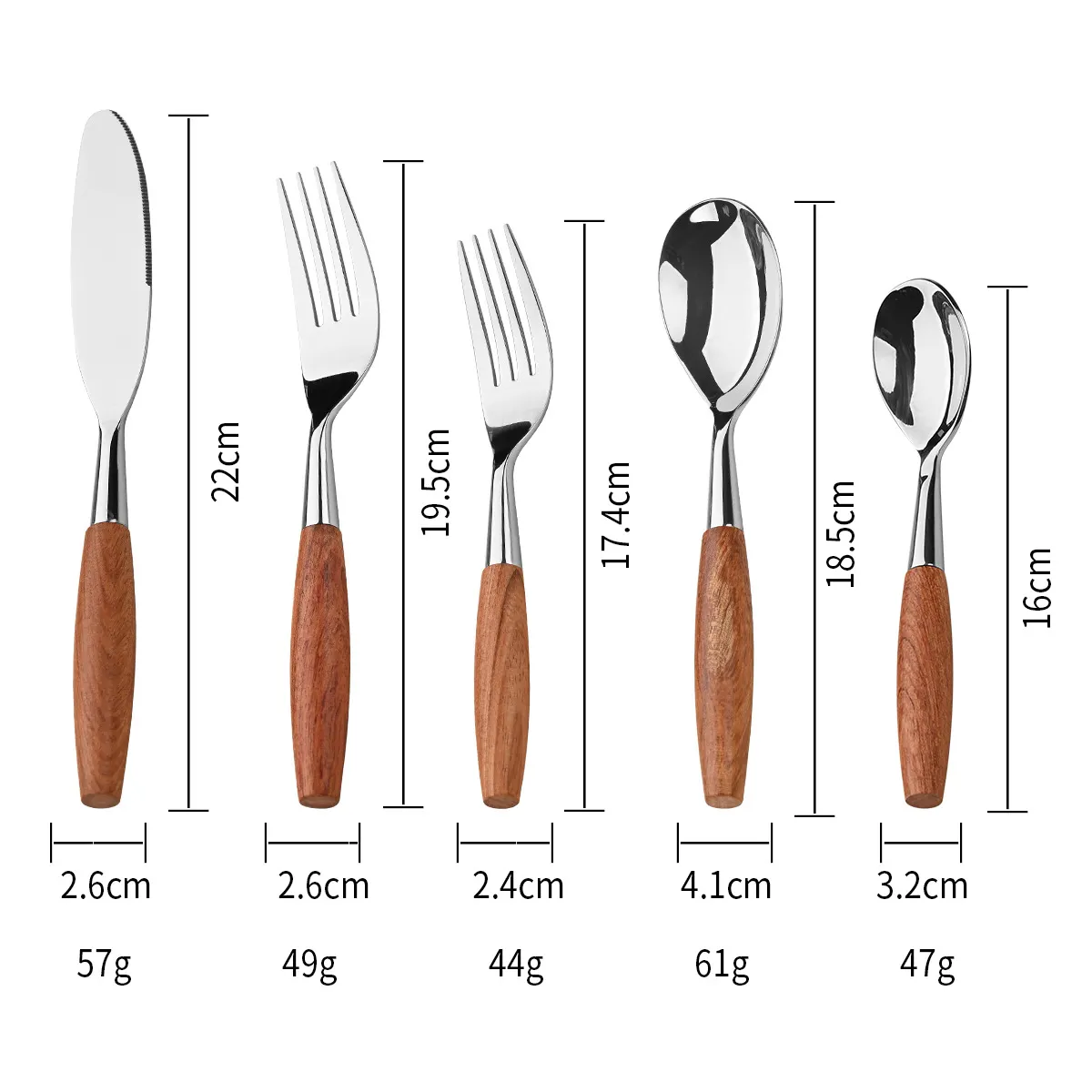 5 PCS INS Japan South Korea Silverware Fork Knife Spoon Cutlery Metal 304 Stainless Steel Flatware Set with Wood Handle