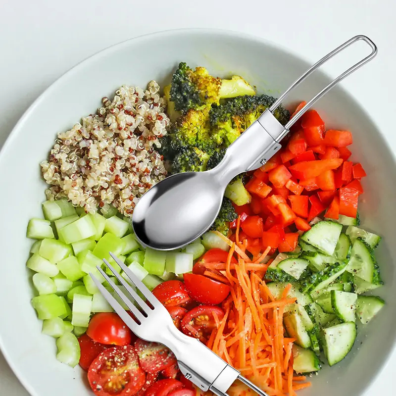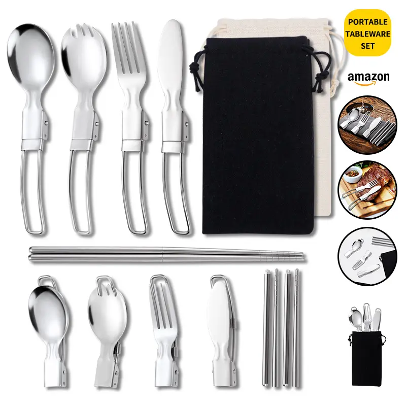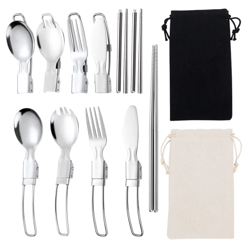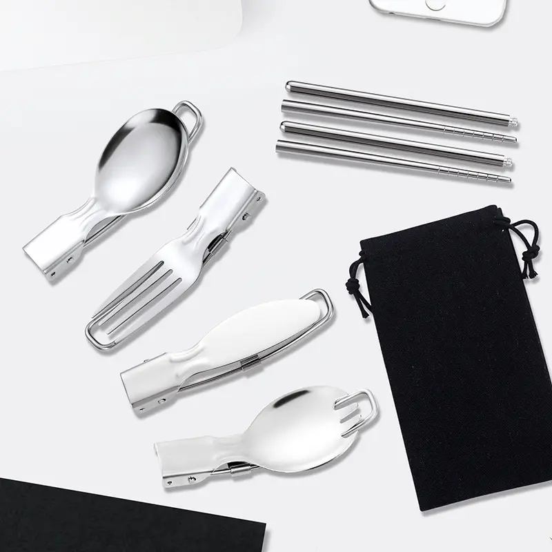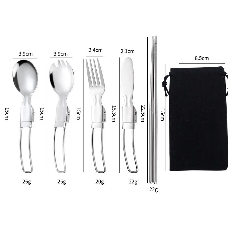 5PCS Portable Travel Foldable Flatware Set 304 Stainless Steel Spoon Fork Knife Spork Chopsticks Cutlery in Bag