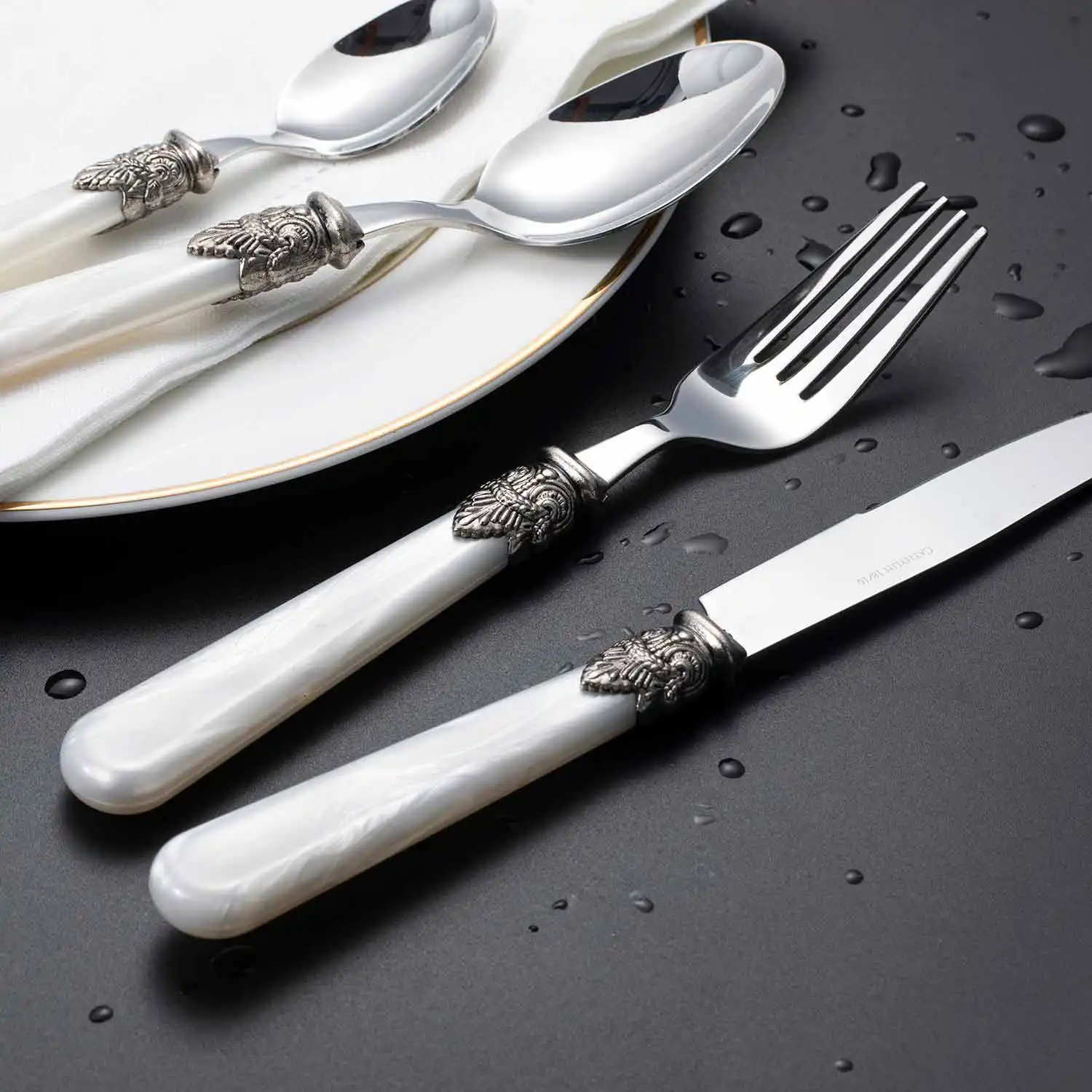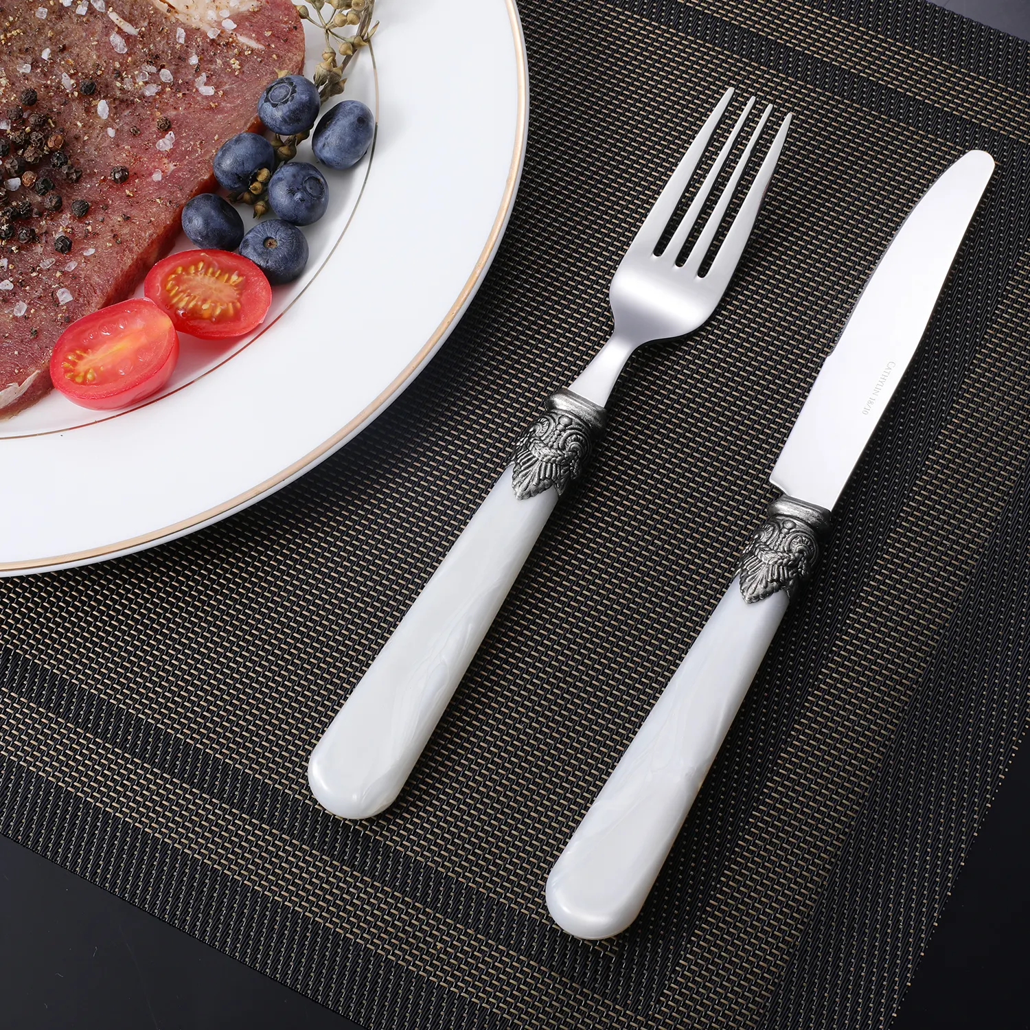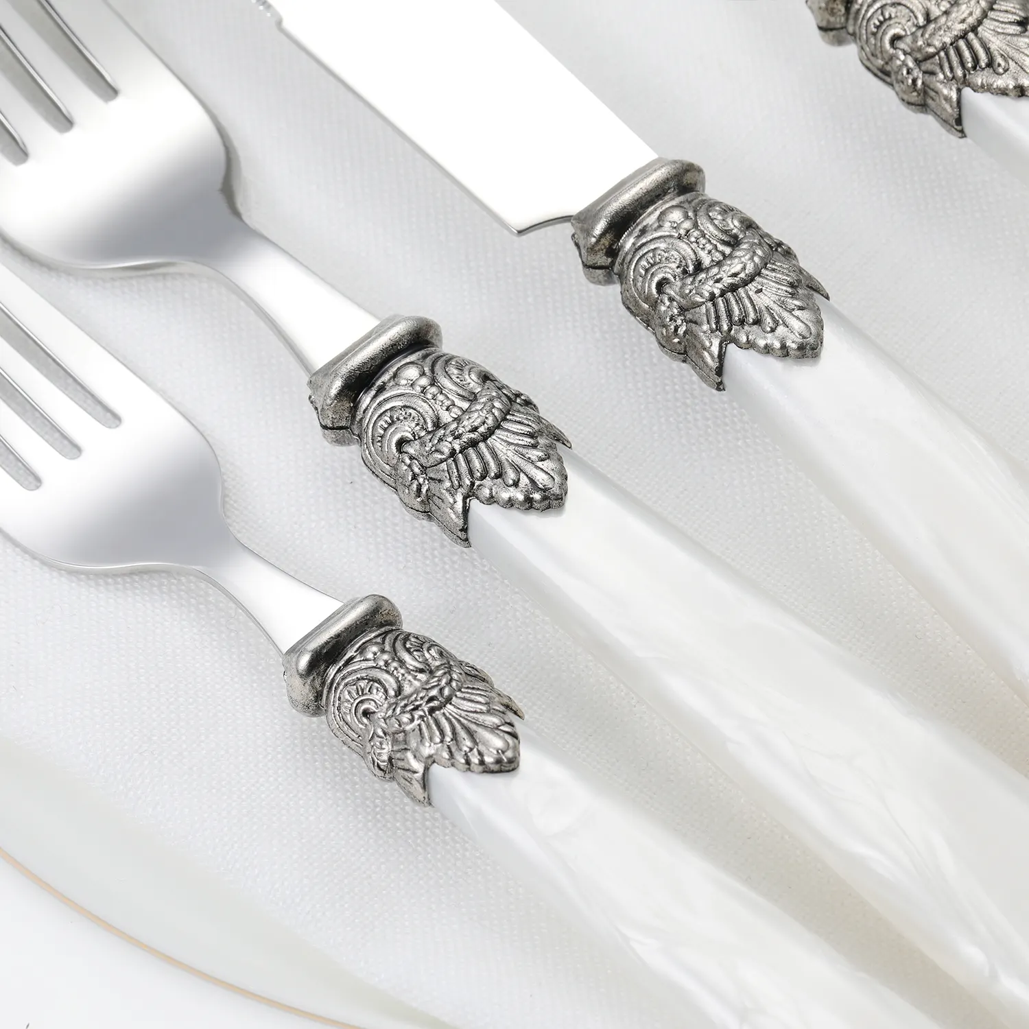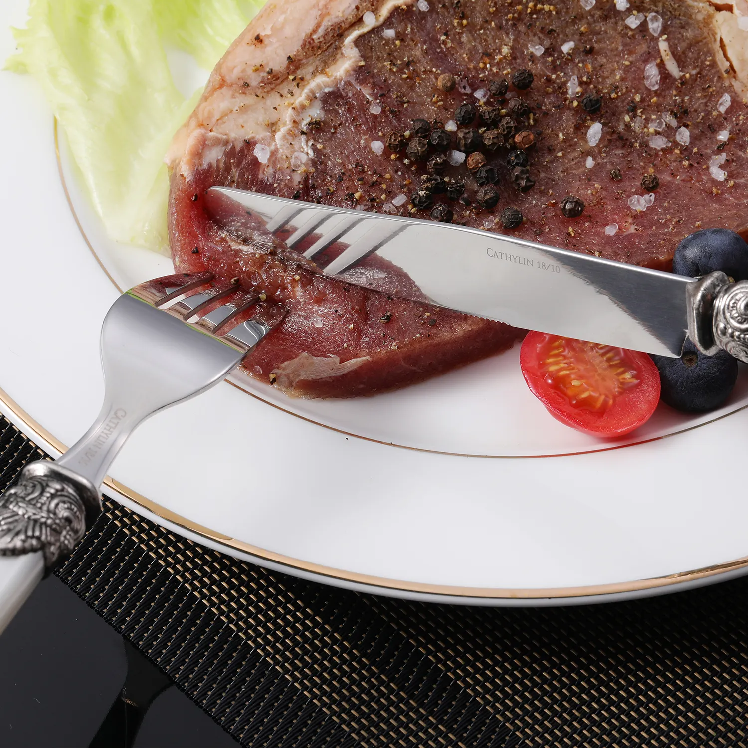 Cathylin 4 PCS Elegant Silverware Fork Knife Spoon Cutlery Thin Long Handle Stainless Steel Flatware Set for Hotel Restaurant