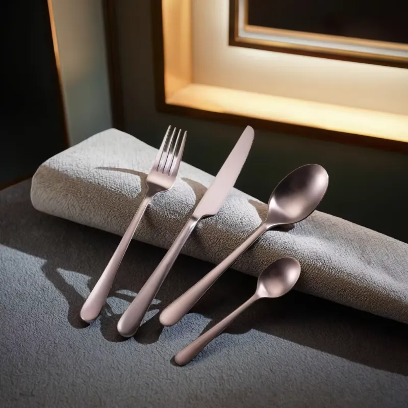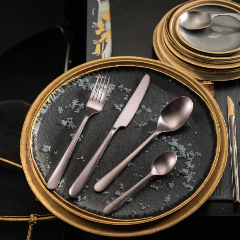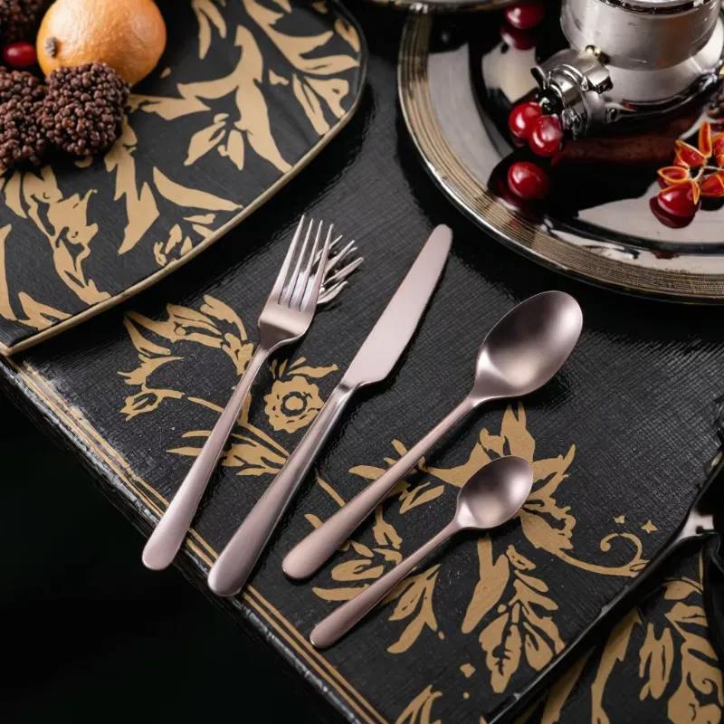 Cathylin 4 PCS 18/10 Cutlery Rose Gold Fork Knife Spoon Metal Stainless Steel 304 Flatware Set for Hotel Restaurant Even Wedding