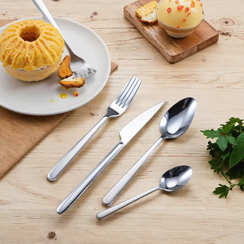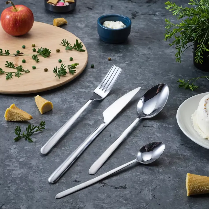 Cathylin 4 PCS Custom Thin Long Handle Cutlery Fork Knife Spoon Silverware Stainless Steel Flatware Set for Hotel Restaurant