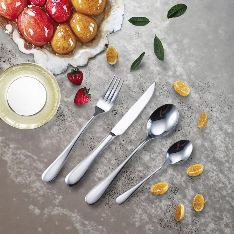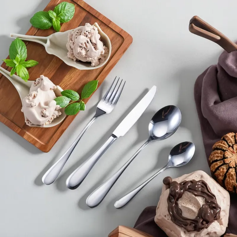 Cathylin 4 PCS Elegant Cutlery Fork Knife Spoon Silverware Stainless Steel Flatware Set with Thick Hnalde for Hotel Restaurant