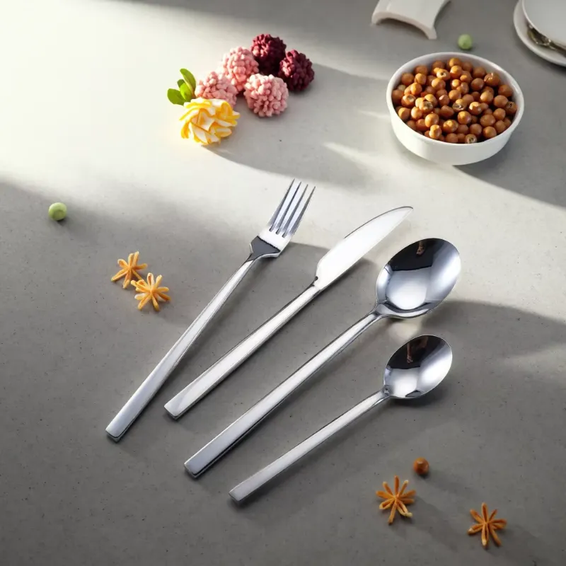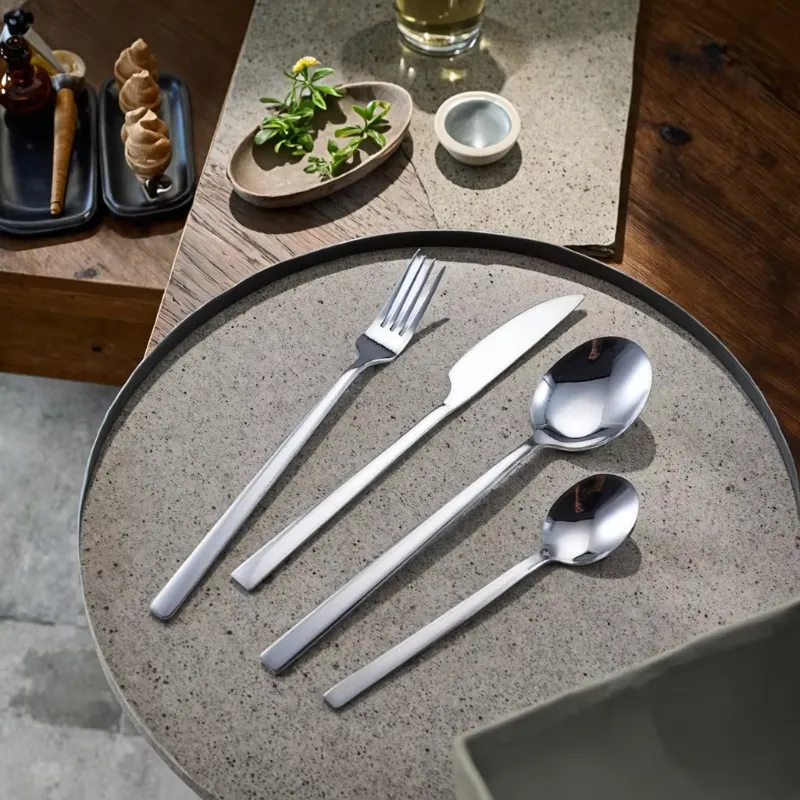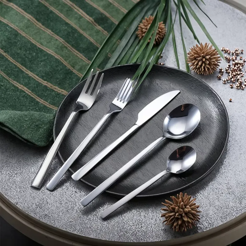 4. Cathylin 4 PCS Elegant Silverware High End Fork Knife Spoon Metal Cutlery Stainless Steel Flatware Set for Hotel Restaurant