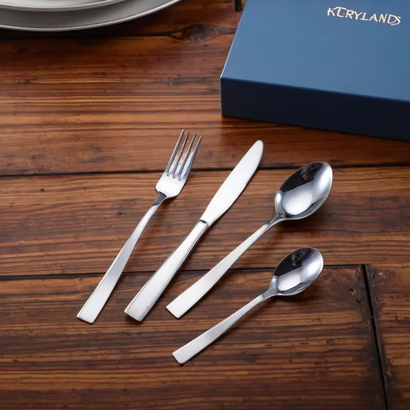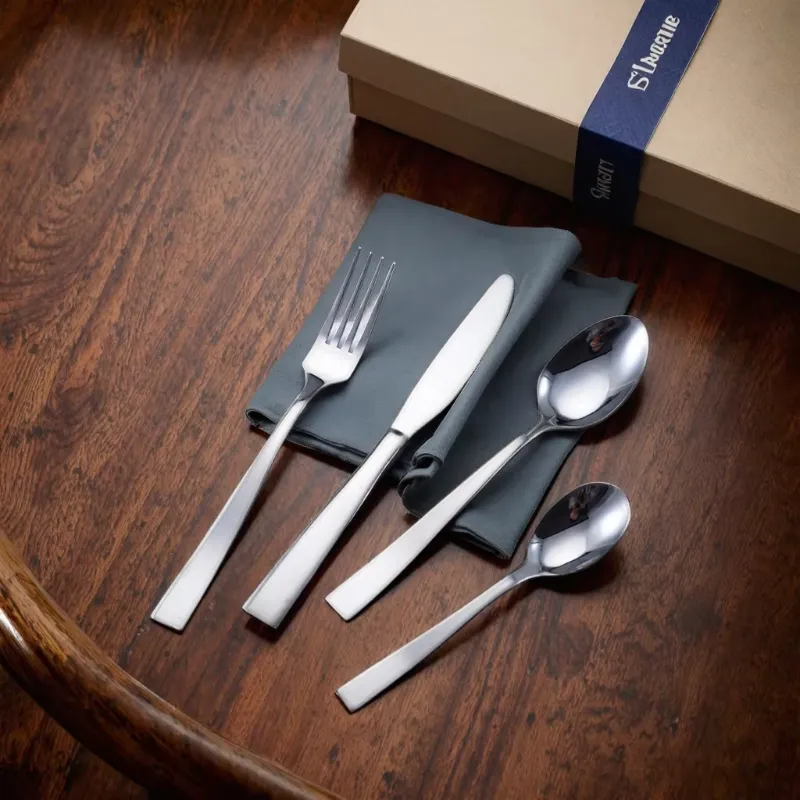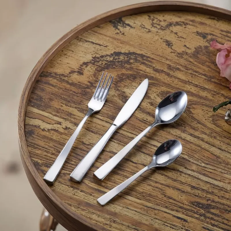 4. Cathylin 4 PCS Modern Silverware Fork Knife Spoon Cutlery Thick Metal Stainless Steel Flatware Set for Hotel Restaurant