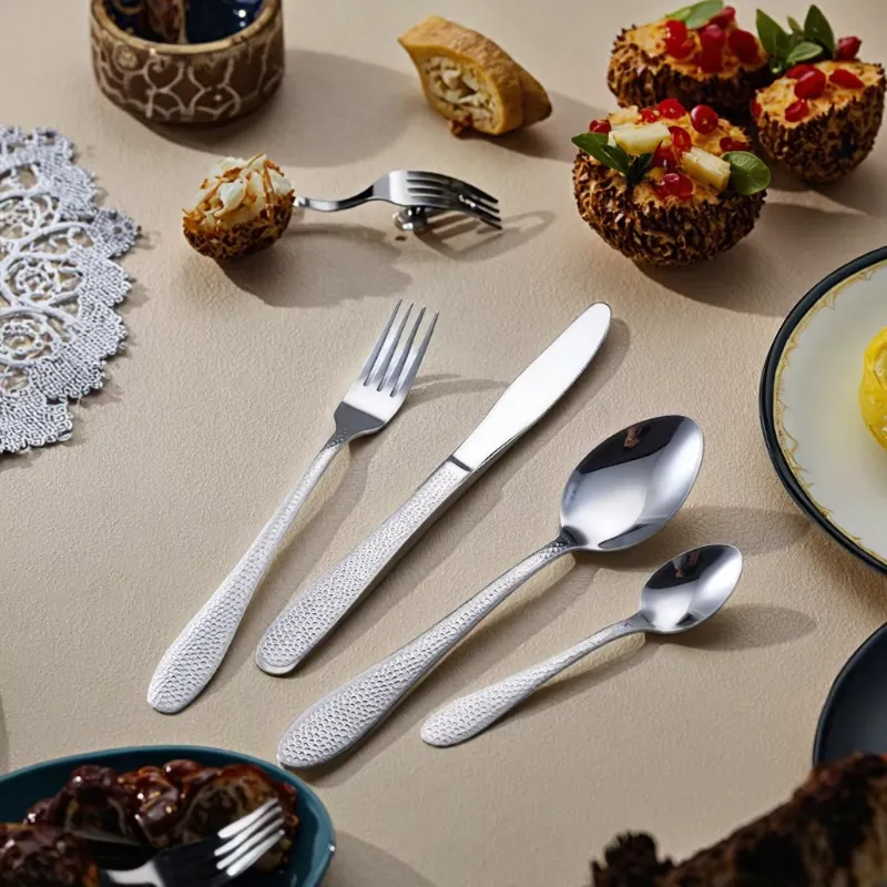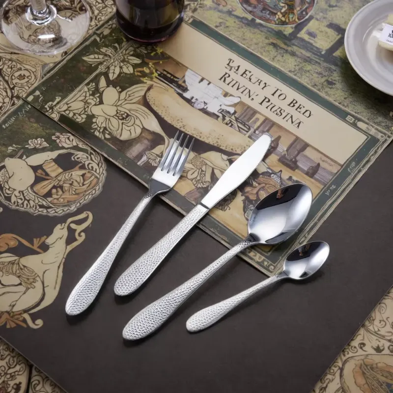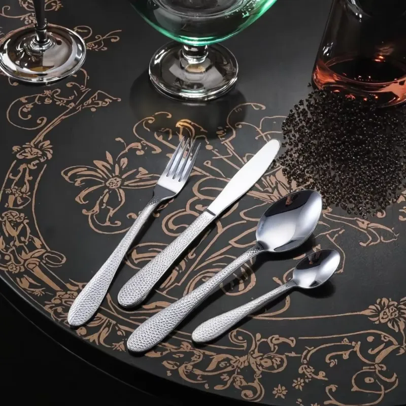 Cathylin 4 PCS Modern Silverware Fork Knife Spoon Hammer Pattern Cutlery Stainless Steel Flatware Set for Hotel Restaurant Table