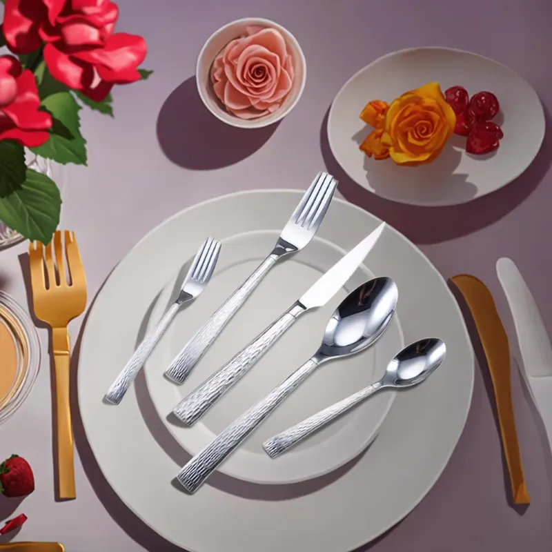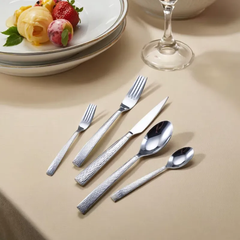 Cathylin 5 PCS 18/10 Cutlery High End Fork Knife Spoon Metal Stainless Steel 304 Flatware Set for Hotel Restaurant