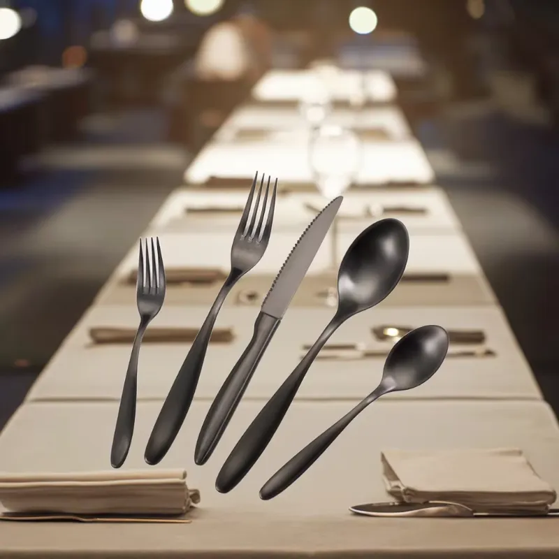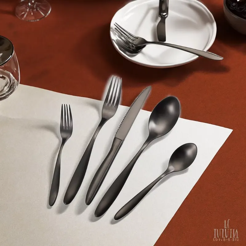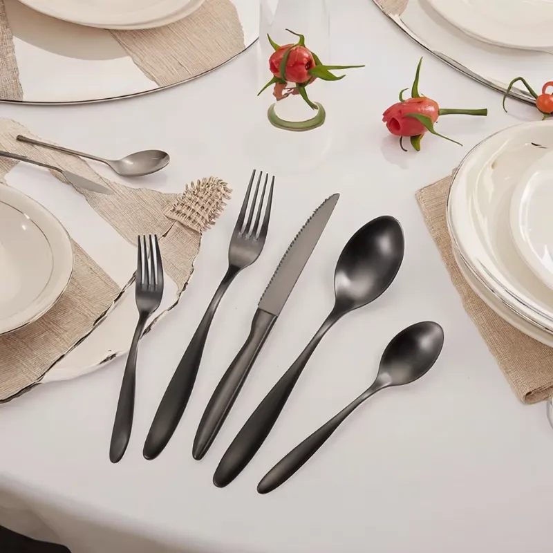 Cathylin America 5 PCS 18/10 Dessert Tea Fork Knife Spoon New Cutlery Black Stainless Steel 304 Flatware Set for Even Wedding