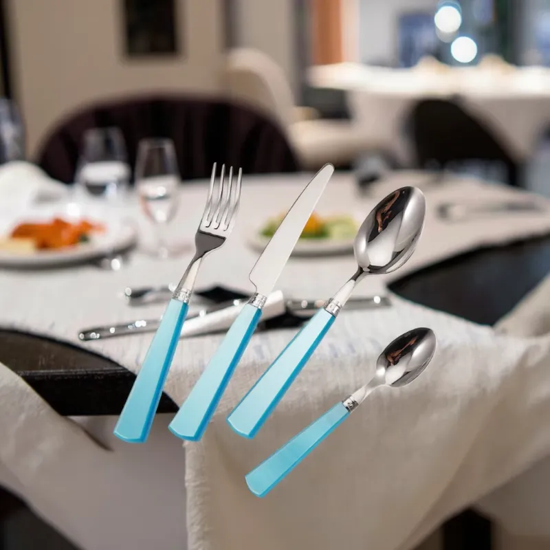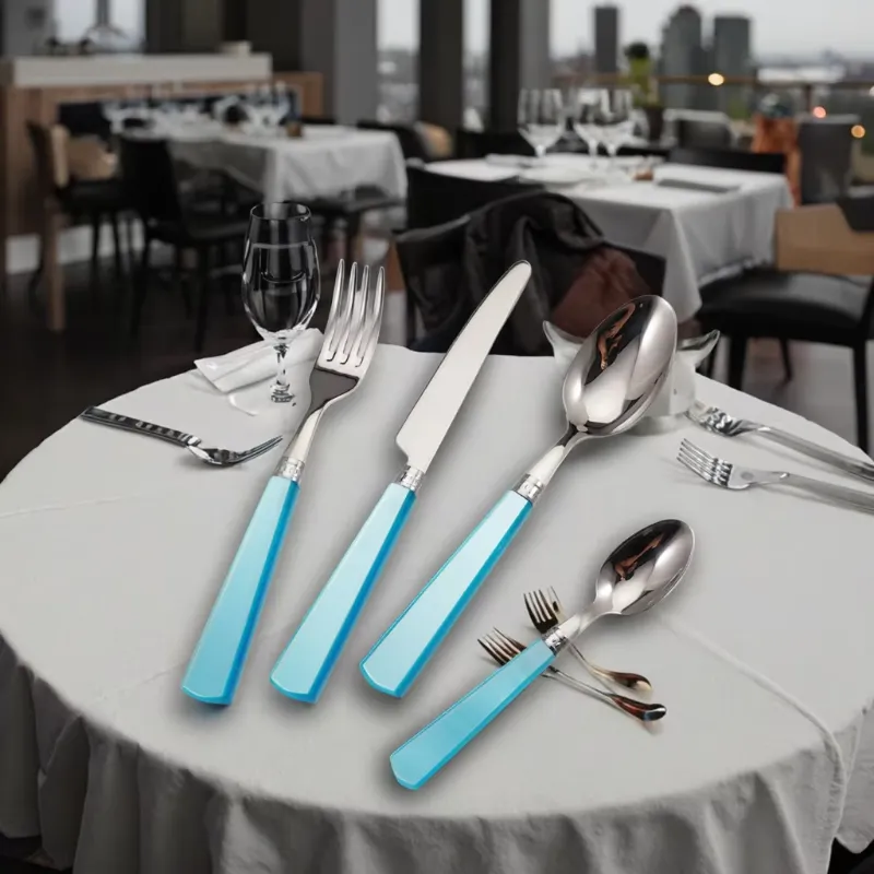 Cathylin Blue Handle Novel Flatware China Manufacturer 4 PCS Spoon Fork Knife Stainless Steel Cutlery Set for Event Wedding