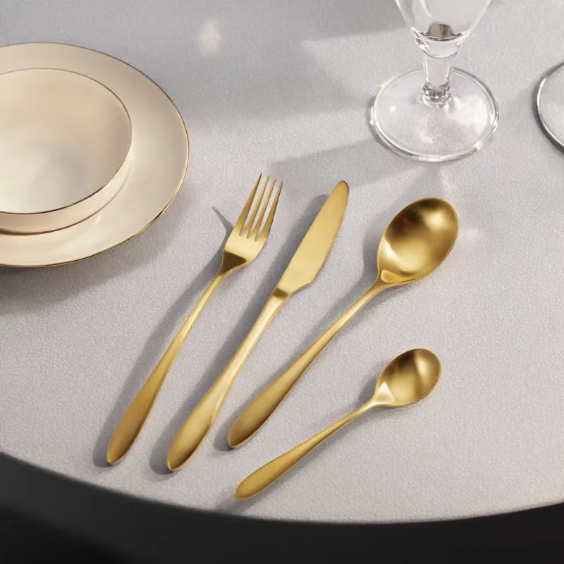 Cathylin China Flatware Manufacturer 4 PCS Europe Gold Fork Knife Spoon Stainless Steel Cutlery Set for Event Wedding