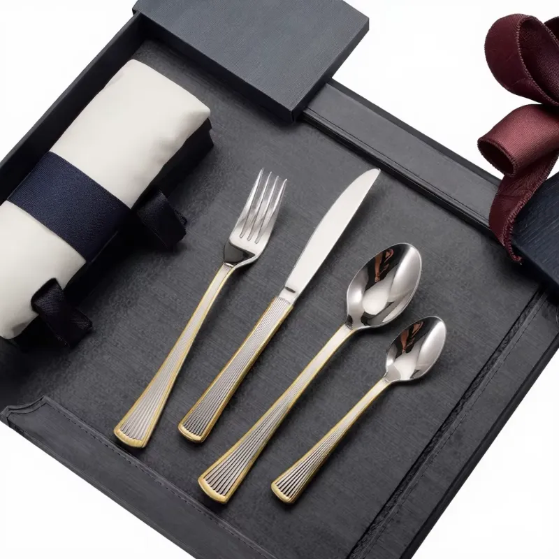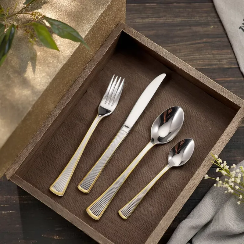 Cathylin China Flatware Manufacturer Europe Stainless Steel 4 PCS Gold Fork Knife Spoon Cutlery Set for Even Wedding
