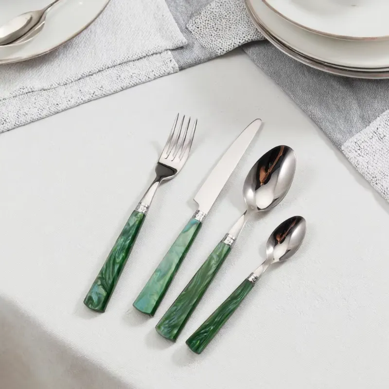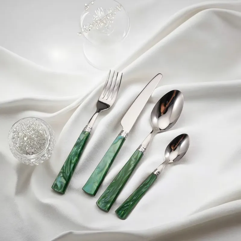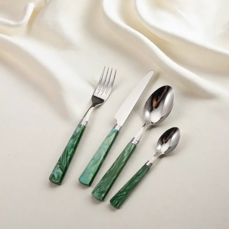 Cathylin China Manufacturer 4 PCS Elegant Flatware Green Handle Spoon Fork Knife Stainless Steel Cutlery Set for Event Wedding