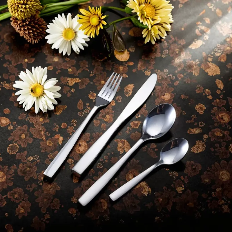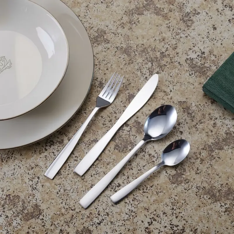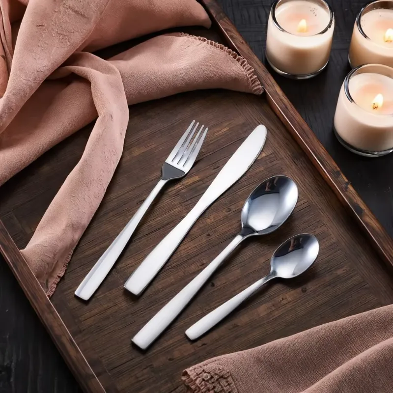 4. Cathylin Classic Europe 4 PCS Silverware Stainless Steel Fork Knife Spoon Cutlery Elegant Flatware for Hotel Restaurant