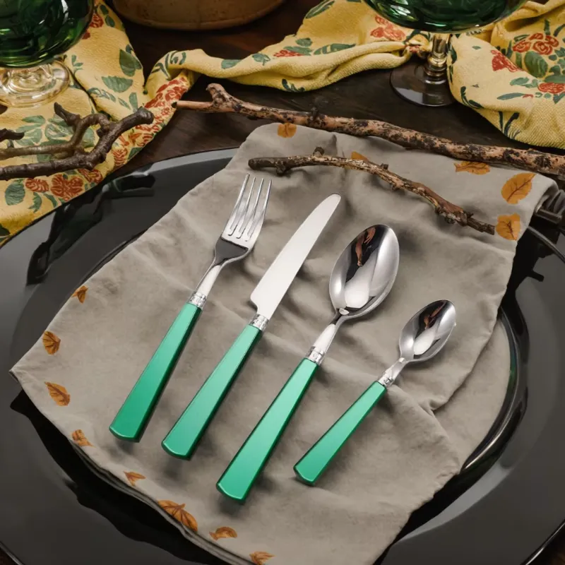 Cathylin Green Handle Elegant Flatware China Manufacturer 4 PCS Spoon Fork Knife Stainless Steel Cutlery Set for Event Wedding