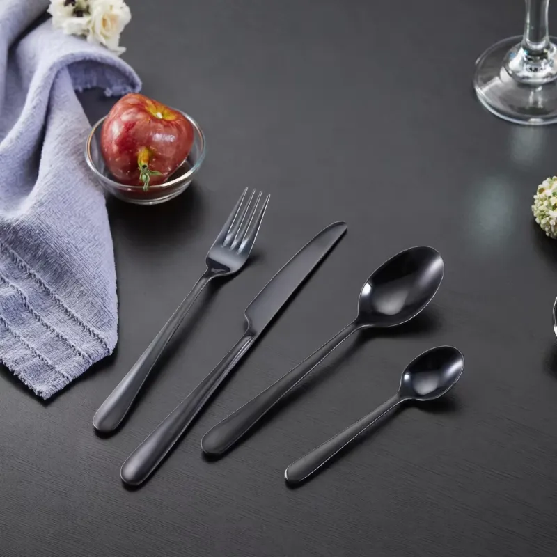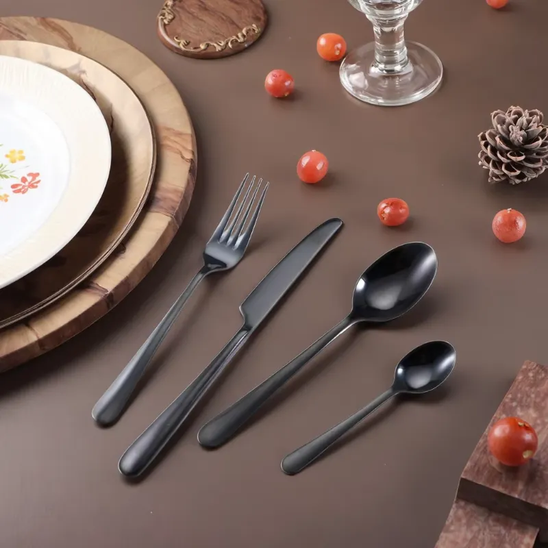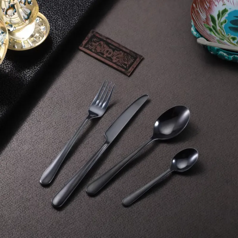 Cathylin Luxury Europe Flatware China Manufacturer 4 PCS Black Classic Stainless Steel Luxury Cutlery Set for Event Wedding