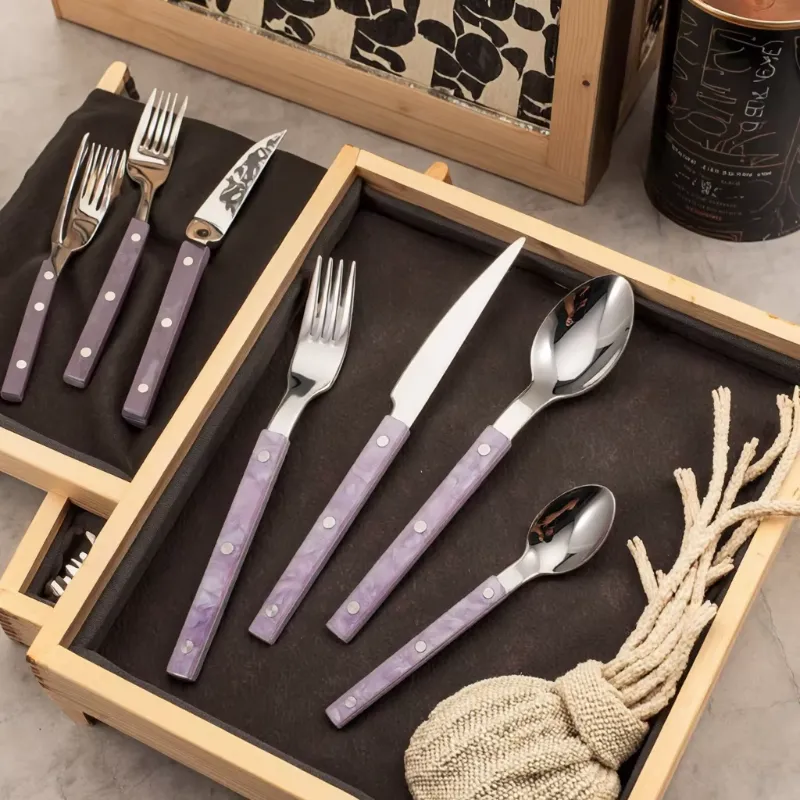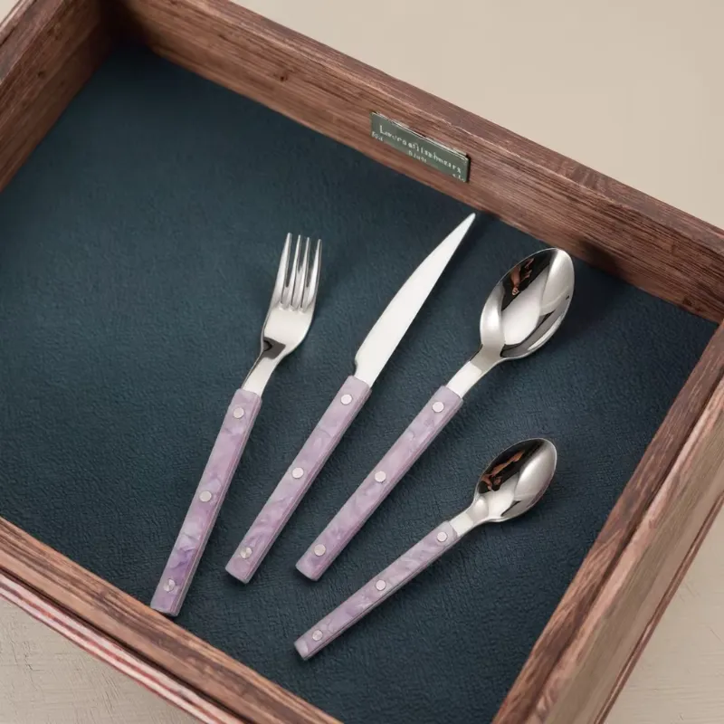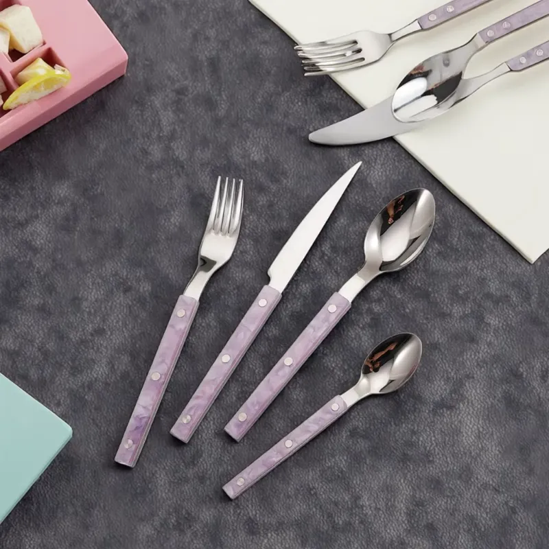 Cathylin Pink Handle Novel Flatware Plastic Rivet Handle 4 PCS Spoon Fork Knife Stainless Steel Cutlery Set for Event Wedding