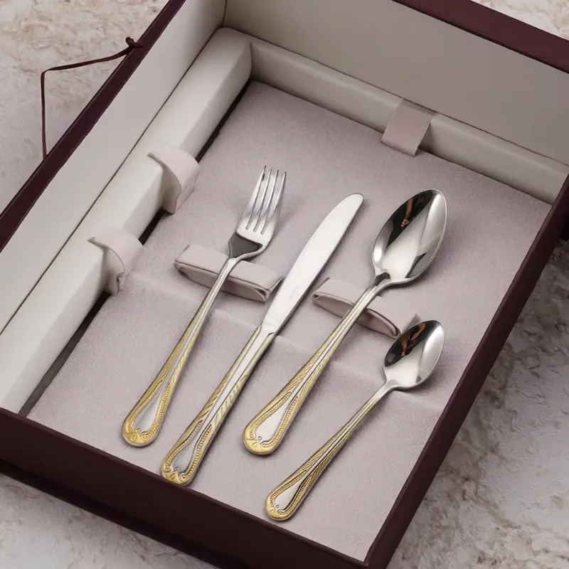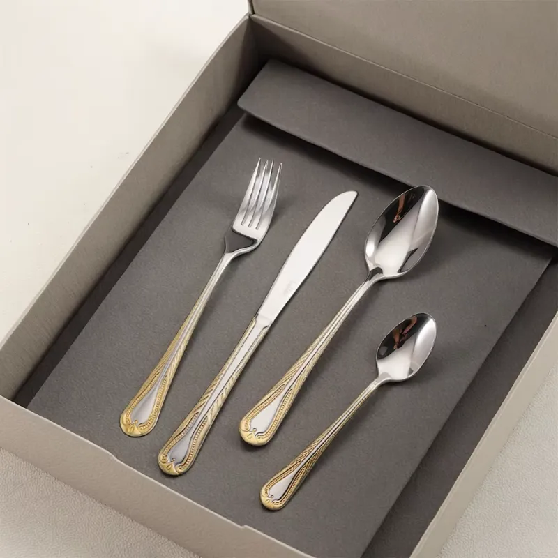 Cathylin Retro Middle East Flatware China Manufacturer 4 PCS Gold Fork Knife Spoon Stainless Steel Cutlery Set for Even Wedding