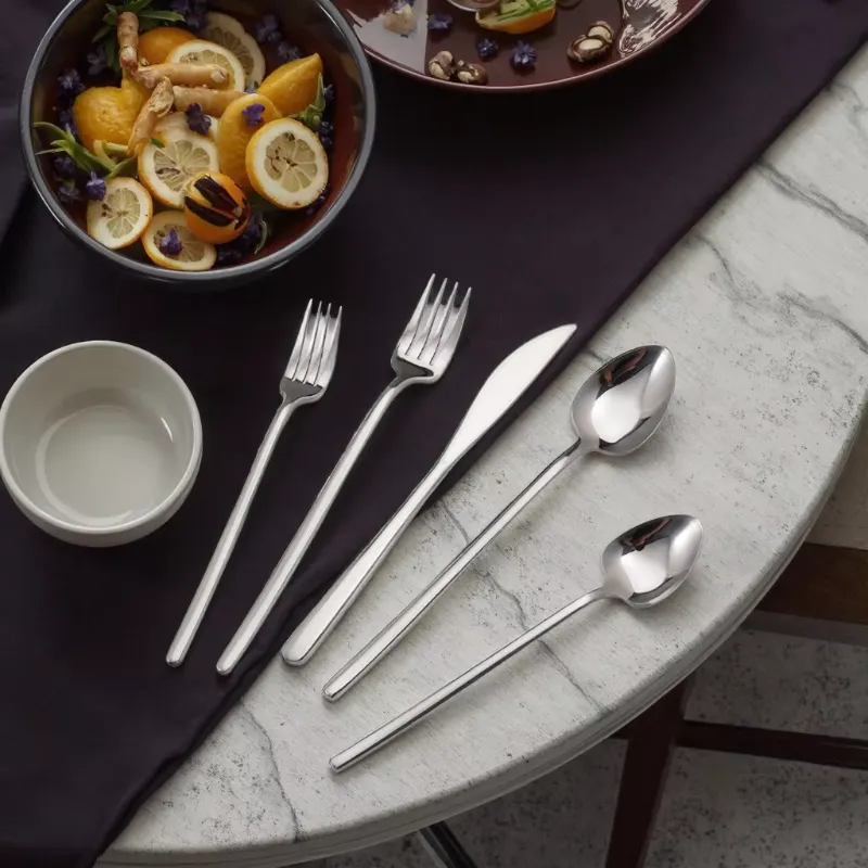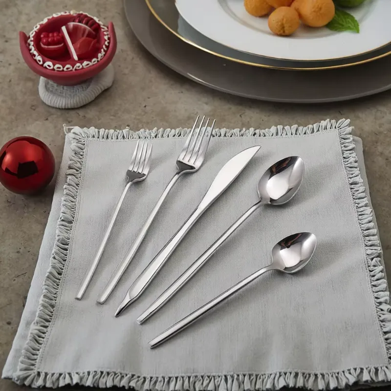 4. Cathylin Wholesale Silverware 5 PCS America Fork Knife Spoon Custom Cutlery Stainless Steel Flatware Set for Hotel Restaurant