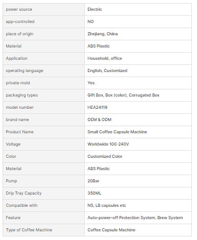 Custom 20 Bar High Pressure Pump Multi Espresso Pod Coffee Maker Small Coffee Capsule Machine Compatible with Nespreso