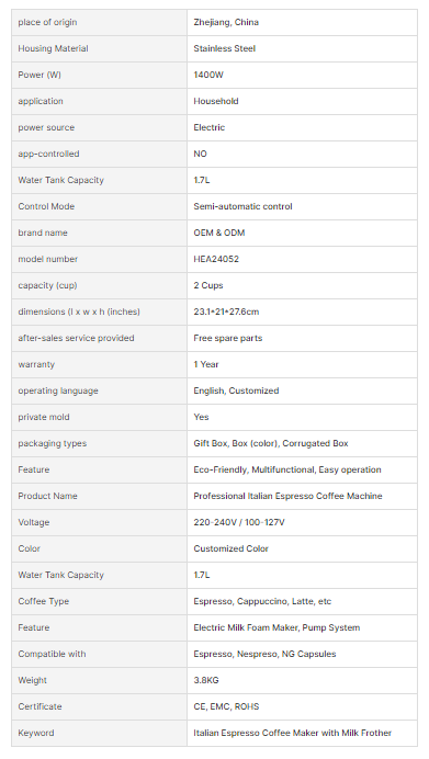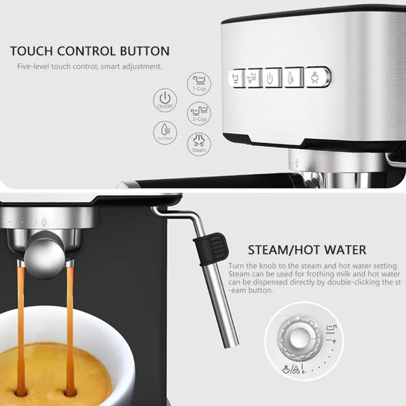 Custom 20 Bar Pump 3 in 1 Capsule Expresso Maker Semi-automatic Professional Italian Espresso Coffee Machine with Steam Wand