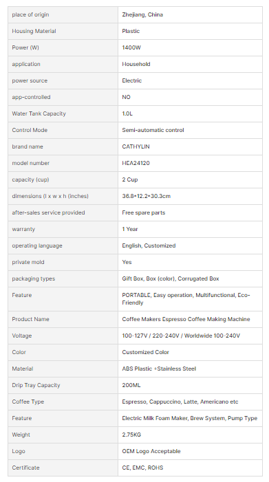 Custom 20 Bar Pump Electric Latte Cappuccino Machine Compact Home Coffee Makers Espresso Coffee Making Machine with Milk Tank