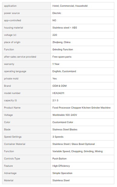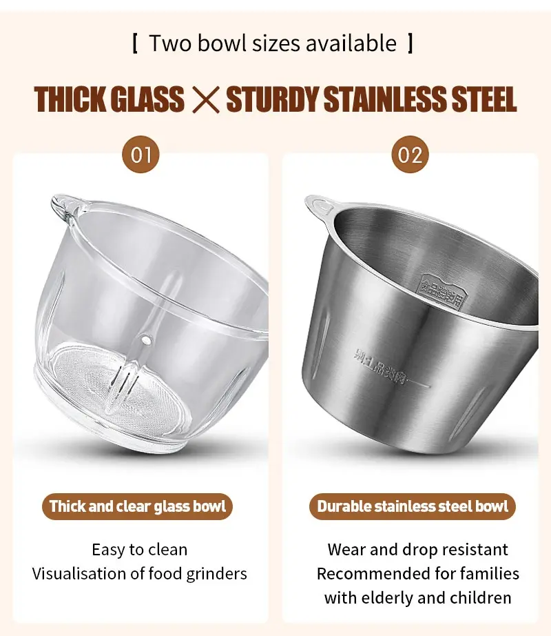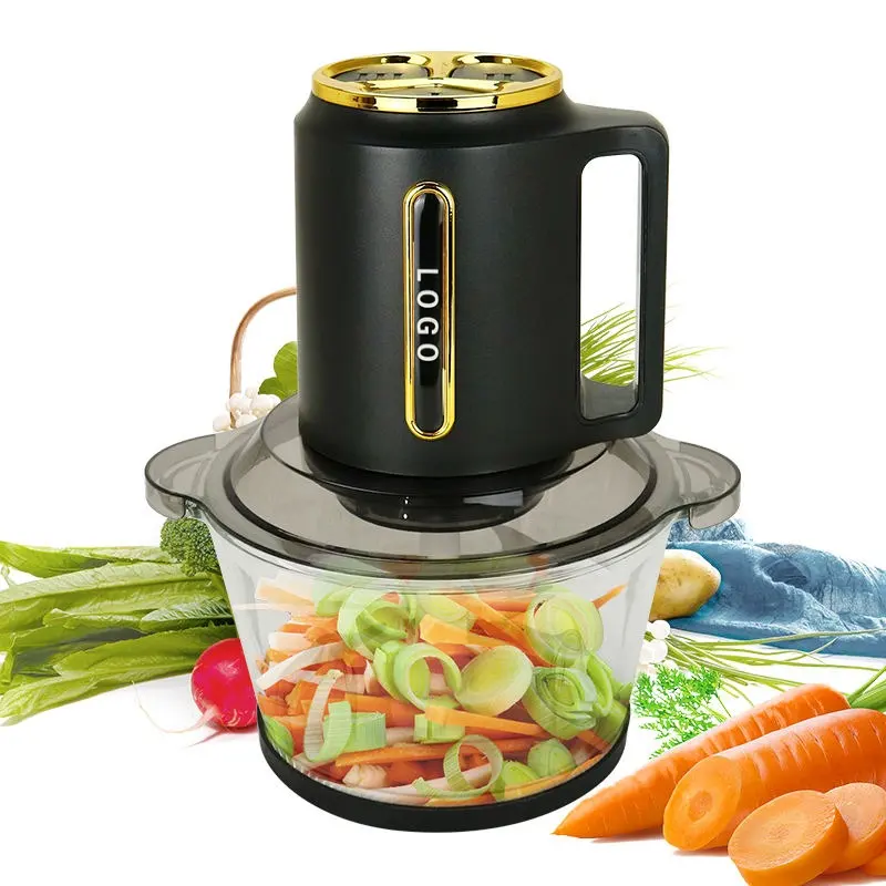 Custom 2L 3L Glass Bowl Electric Stainless Steel Automatic Food Processor Chopper Kitchen Grinder Machine for Meat Vegetable