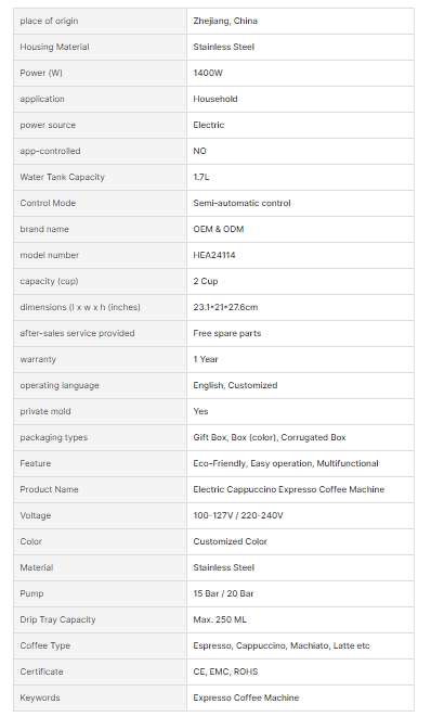 Custom Fast Heating 20 Bar Programmable Small Espresso Maker Professional Electric Cappuccino Expresso Coffee Machine for Home