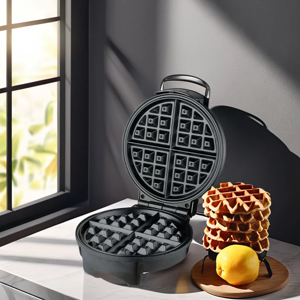 4. Custom Logo 4 Slice Stainless Steel Breakfast Waffle Machine Round Shape Professional Non Stick Electric Belgian Waffle Makers
