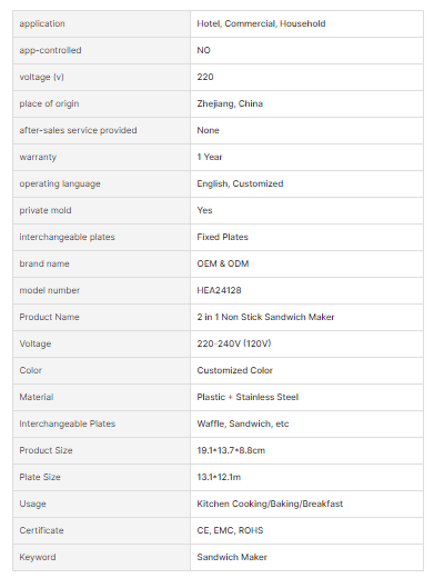 Custom Multi-purpose Mini Waffle Maker Detachable Breakfast Sandwich Maker Toaster 2 in 1 Non Stick Sandwich Maker