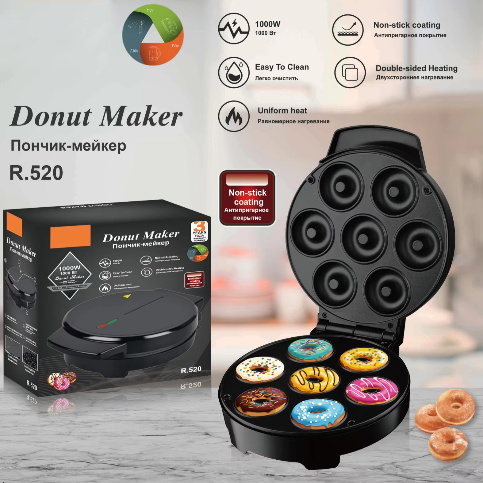 3. Custom Non-stick Coating Plate 7 Hole Doughnut Machine Portable Electric Automatic Mini Donut Maker for Snacks Desserts