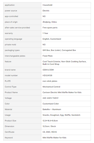 Custom Nonstick Surface 5 Inch Snowflake Heart Shape Waffle Iron Household Multiple Cartoon Electric Mini Waffle Maker for Kids