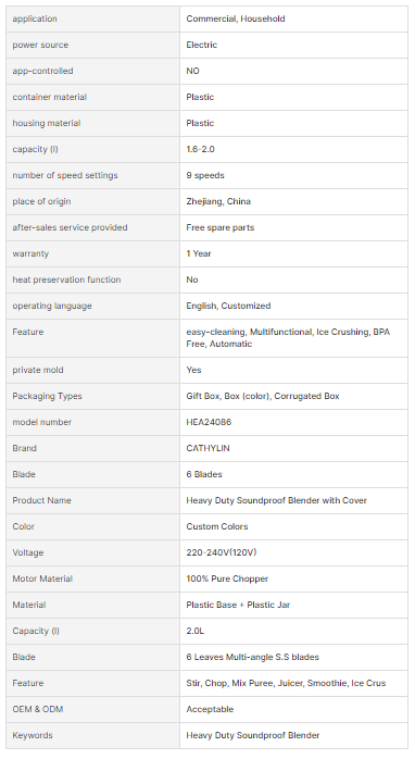 Customized 2L Touchpad Control Commercial Food Processor Smoothie and Shakes Maker Heavy Duty Soundproof Blender with Cover