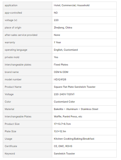 4. Customized Multi-purpose Compact Electric Non-stick Grill Presse Panini Maker Square Flat Plate Sandwich Toaster