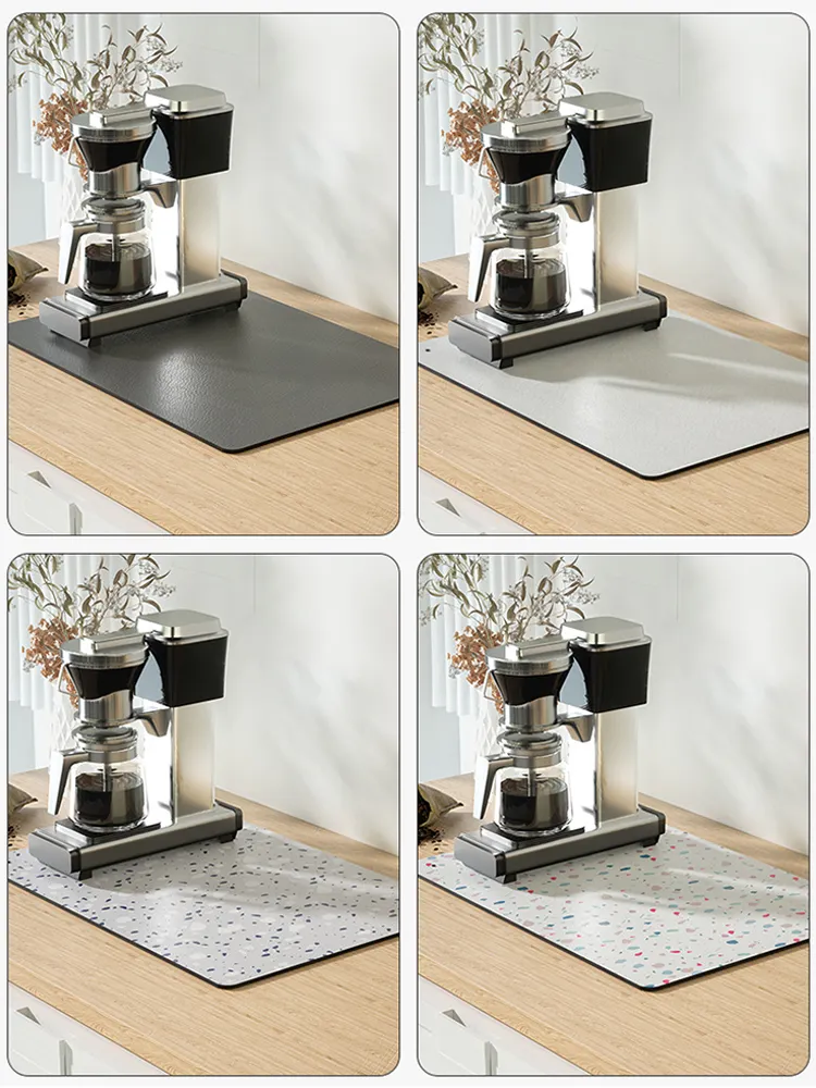4. Easy Clean High Water Absorption Pu Leather Dish Drying Mat Large Heat Resistant Draining Mat for Kitchen