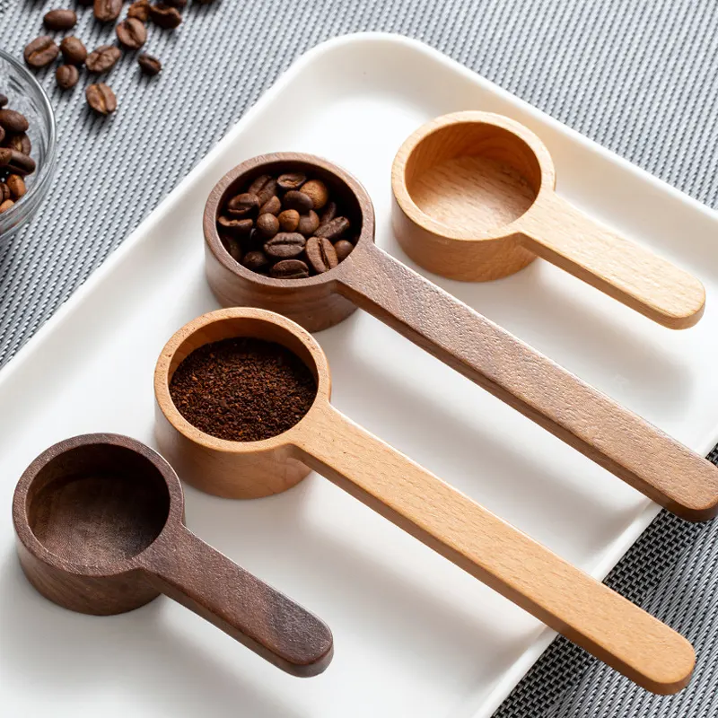 Factory Wholesale Custom Logo Coffee Bean Measuring Spoon Beech Wooden Black Walnut Wood Coffee Scoop