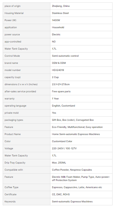 High Pressure 20 Bar Stainless Steel Italian Coffee Maker Professional Home Semi-automatic Espresso Machines with Milk Frother