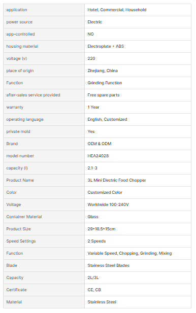 High Quality Stainless Steels 6 Blades Vegetable Meat Grinder Mincer Multifunction Kitchen 3L Mini Electric Food Chopper