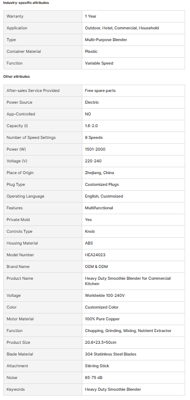 High Speed 2000W Food Mixing Ice Blenders Machine Professional Heavy Duty Smoothie Blender for Commercial Kitchen
