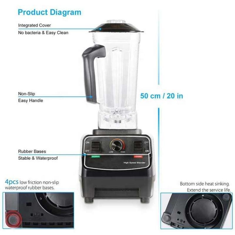 3. High Speed 2000W Food Mixing Ice Blenders Machine Professional Heavy Duty Smoothie Blender for Commercial Kitchen