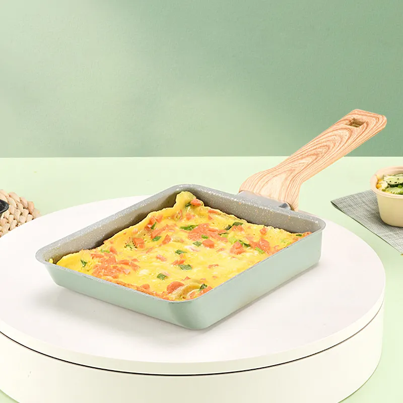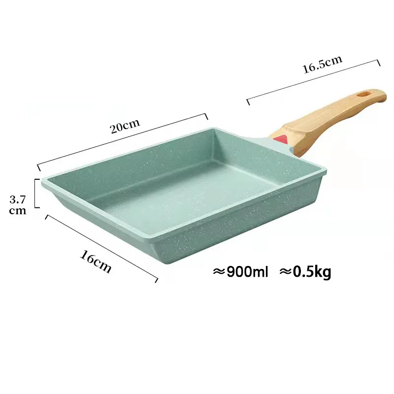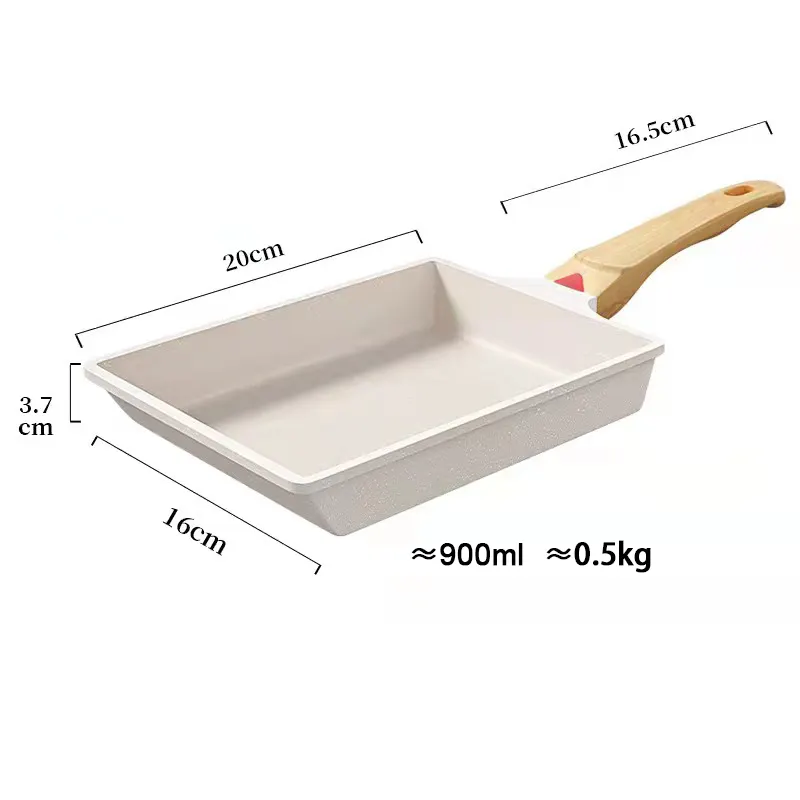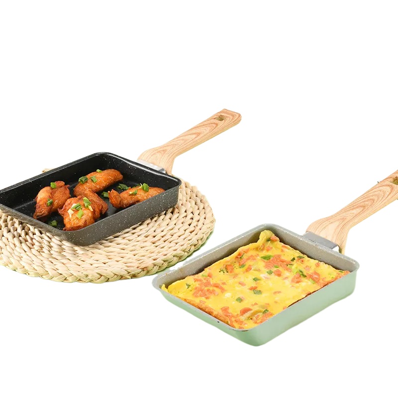 Japanese Non-stick Aluminium Pot Flat-Bottomed Kitchen Cooking Iron Pot Omelette Pan Frying Pan With Wood Handle