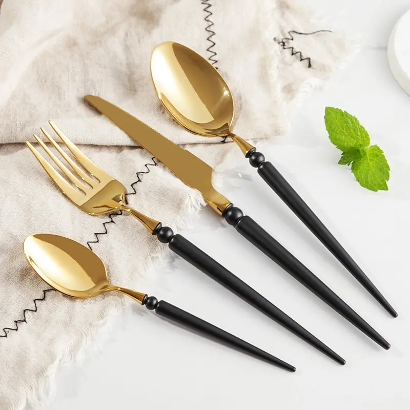Luxury 4 PCS Silver Gold Plated Modern Flatware Spoon Fork and Knife Stainless Steel Cutlery Set with Thin Color Handle