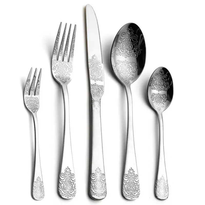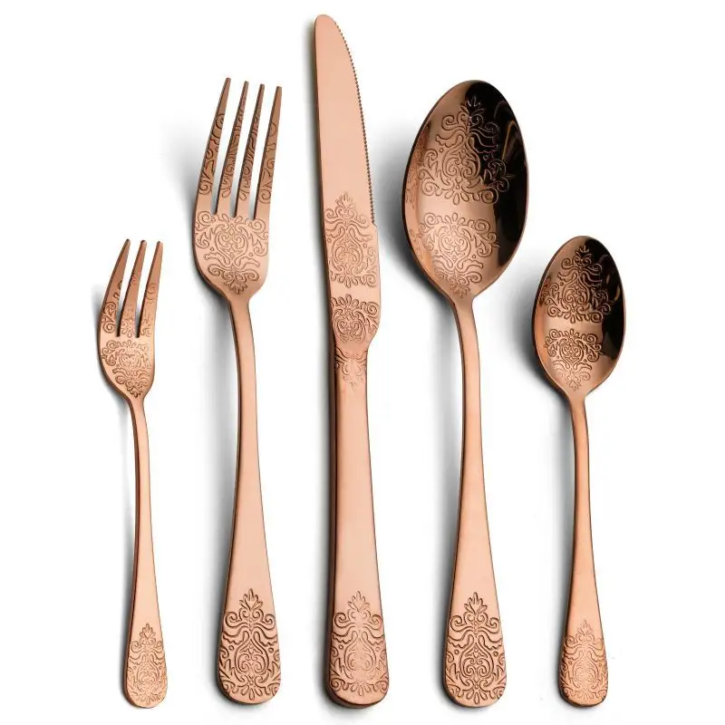 Multicolor Metal En De Acero Inoxidable Con Flores Cubiertos Dorados Juego De Cubiertos Set