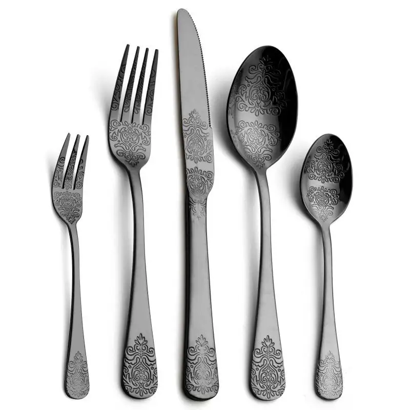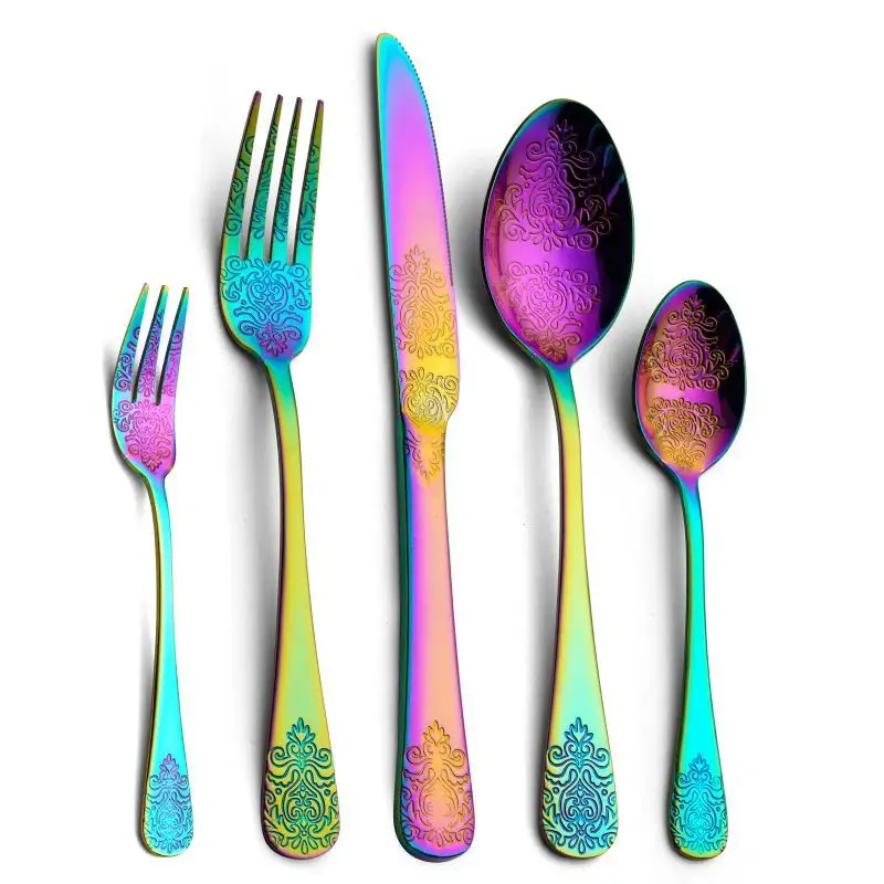 4. Multicolor Metal En De Acero Inoxidable Con Flores Cubiertos Dorados Juego De Cubiertos Set
