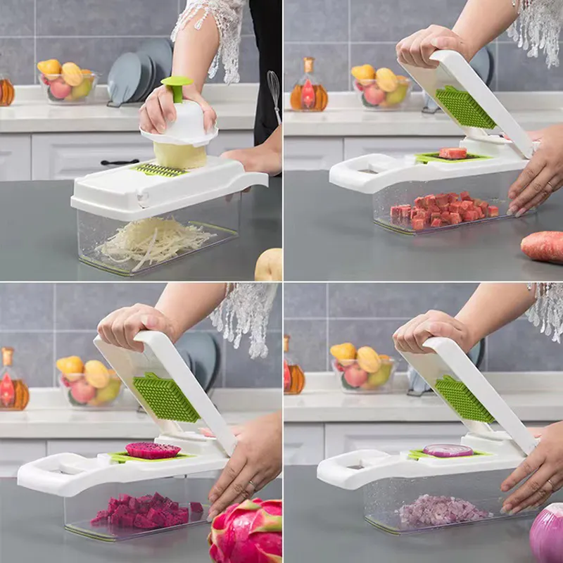 Multifunctional 15 in 1 Kitchen Food Slicer Cutter Manual Mandoline Veggie Onion Garlic Vegetable Chopper with Blade Container
