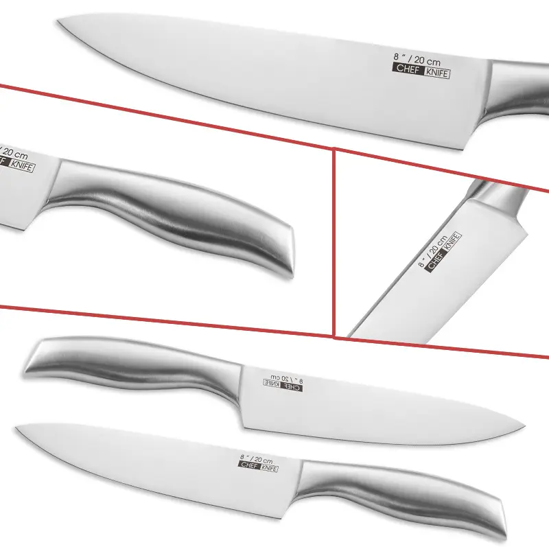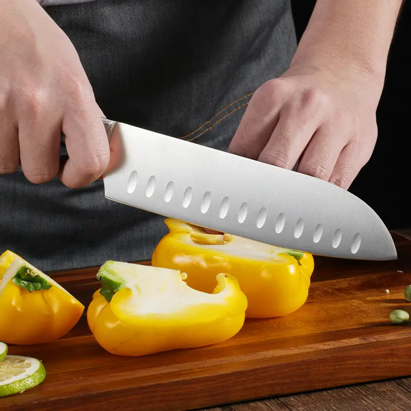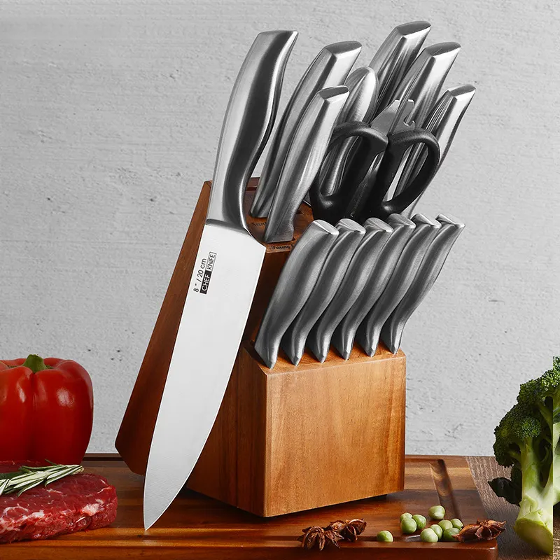 4. Multifunctional 15 PCS Stainless Steel 18/0 Hollow Handle 30cr13 Kitchen Knife Set with Acacia Wood Storage Rack Holder