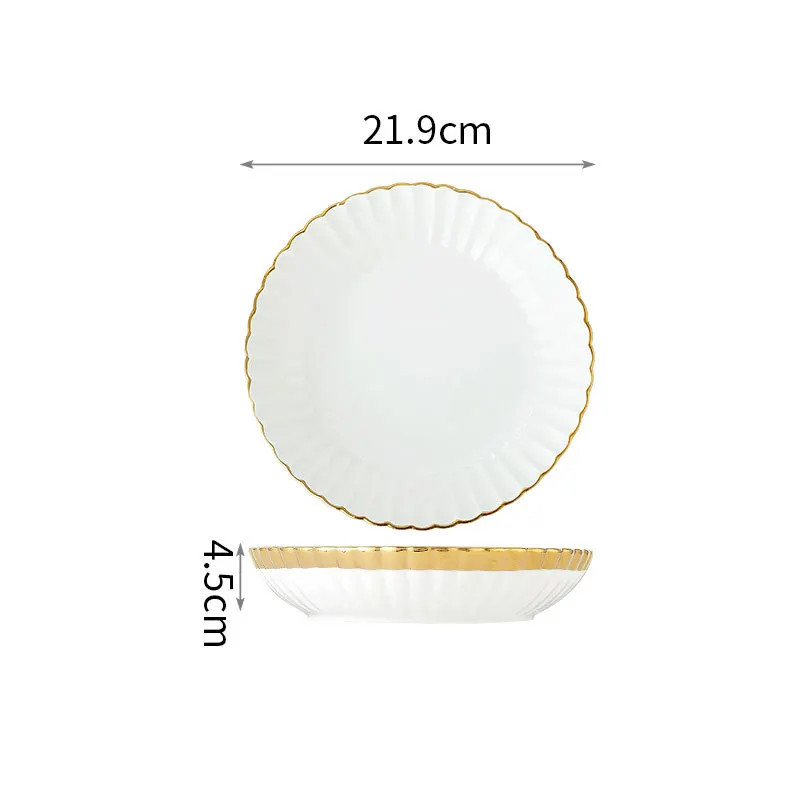 Nordic High-end Tableware Bowl Plates Sets White Gold Rim Ceramic Dinnerware Luxury Crockery Dinner Sets