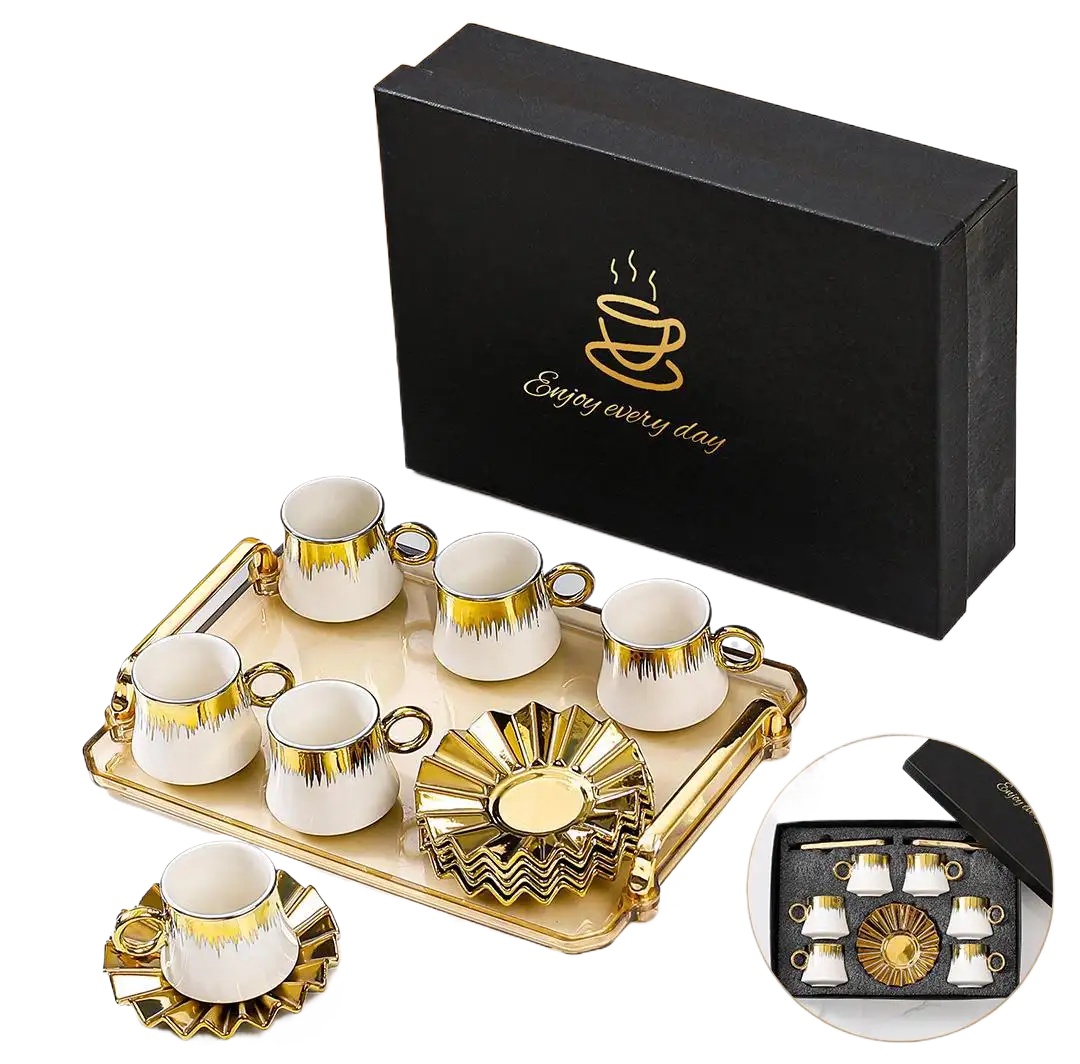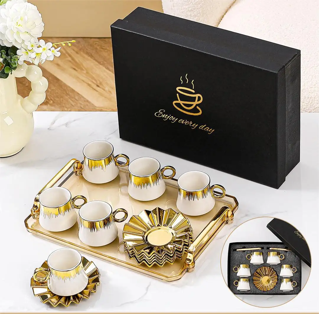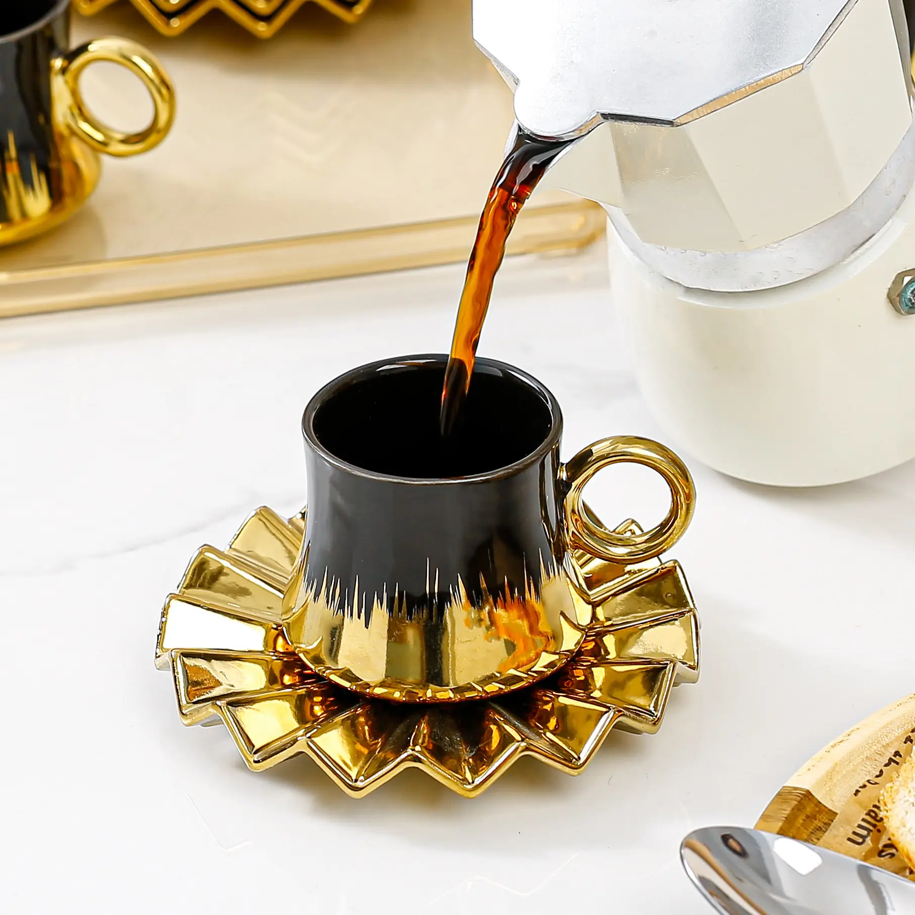 Porcelain Espresso Cup Set Arabic 6PCS 90ml Espresso Ceramic Reusable Coffee Cups With Gold Saucers Set in Gift Box