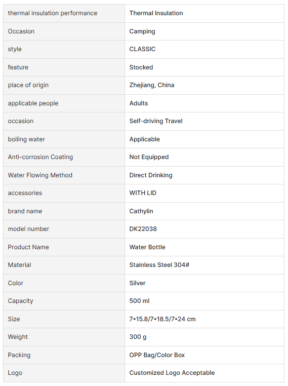 4. Portable Camping Travel 3 Pcs Set 500ml 304 Stainless Steel Water Vacuum Bottle with Lid Cup with Gift Box